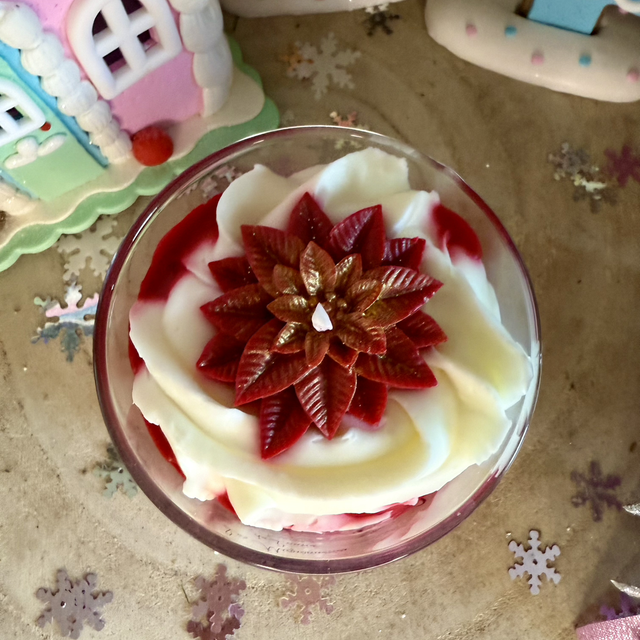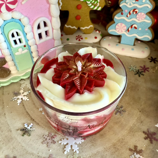 Une jolie bougie avec sa fleur de poinsettia 🌺